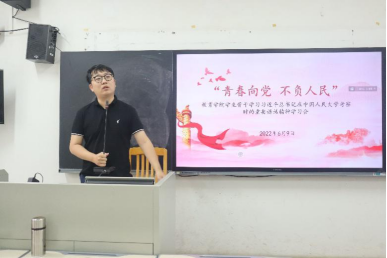 6月9日下午,js3333线路检测中心团委在教学楼教室举办习近平总书记在中国人民大学考察时的重要讲话精神专题学习交流会,学院团委书记刘博洋、团委学生会全体骨干参加会议,学院团委副书记邱思婉同学主持了会议。