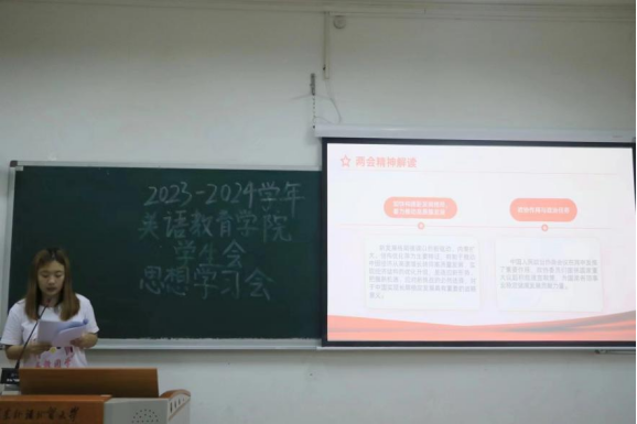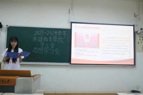 晚上八点整,主持人何川熙介绍本次思想学习会的各项议程,并宣布2023-2024学年js3333线路检测中心学生会思想学习会正式开始。她向各位工作人员介绍了2024年全国两会及其概况并通过两个视频生动形象地带领各位工作人员学习了2024两会工作报告以及两会涉及的关键词。