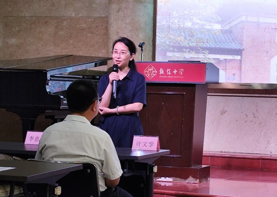 随后,线路检测中心李惠胤副院长作为实习生导师代表发言。李院首先为执信中学能够给实习生们提供如此优秀的实习平台和宝贵的实习机会表示诚挚的感谢。同时,她向全体即将开启实习之旅的实习教师们提出了日后实习工作的几点期望与要求,并致以真诚的祝福。
