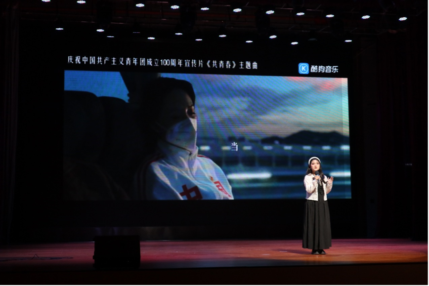 独唱《有我》以高歌磨利剑,唱出青春的力量,展现了中国青年的无畏与担当,以及崇高的爱国主义热情,唱响了属于新时代中国青年蓬勃向上的主旋律,悠扬的歌声蕴含着建设中国特色社会主义强国的铿锵之志。