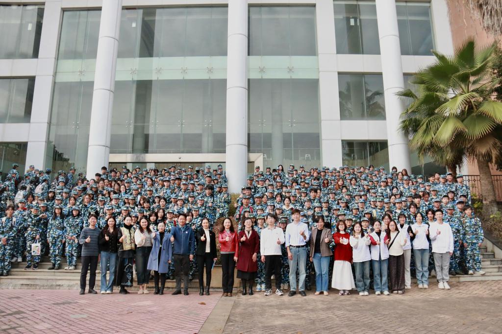 1月2日下午,js3333线路检测中心党委书记骆银花、院长吴岩、副院长张倩、副院长刘亮星、党委副书记罗诞铖、师范系主任谢剑萍及全体辅导员走进军训场,开展军训慰问活动。学院领导为教官及参训新生送上精心准备的慰问品,传递学院的关怀与温暖。