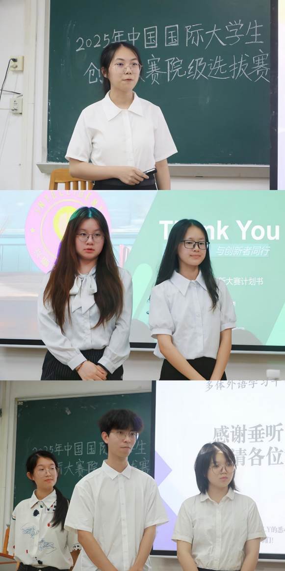 为激发青年学子的创新潜能、展现新时代大学生风采,js3333线路检测中心于5月8日晚18:30在南校区教学楼E303举办了2025年中国国际大学生创新大赛广东省分赛院级选拔赛。js3333线路检测中心党委副书记罗诞铖、团委书记李敏嘉莅临比赛现场,js3333线路检测中心预科班辅导员、学生工作部爱克达玉素甫,艺术学院团委书记彭维英,新闻学院党建指导老师熊仕经担任评委。