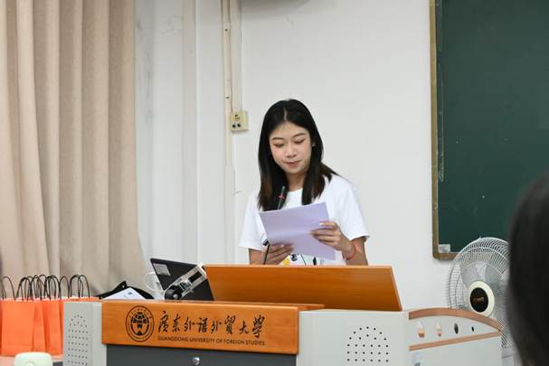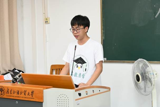 组织部工作人员冼坤南作为代表发言。他讲述了在团学大家庭中,从青涩新生蜕变为独当一面的工作者的成长历程。他还表示,在这一年中,他提高了沟通协作能力,懂得了奉献精神的意义,并祝愿团学未来涌现更多优秀成员。