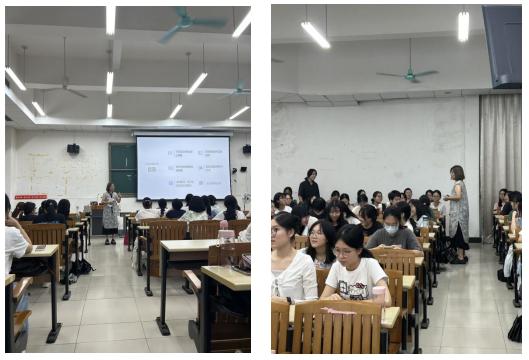 讲座中,张老师围绕实习教师普遍面临的挑战与成长需求,系统分享了她总结的“通关秘籍”。内容包括如何快速适应实习教师角色、有效进行课堂管理和教学设计、建立良好师生关系、处理突发情况以及合理规划实习期间的专业成长路径等。张老师通过大量真实案例,生动具体地讲解了从学生到教师转变过程中的关键环节与实用策略,为同学们提供了全面而细致的指导。