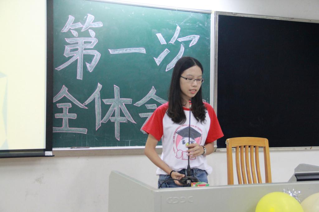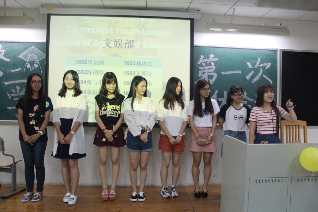 徐昶斌致辞后,宣传部干事刘丝嘉作为新干事代表上台发言。她代表所有干事,表示会努力负起团学的责任,帮助团学越做越好。随后,各部门干事也分别上台做自我介绍。不同风格的介绍使得现场气氛十分热烈。